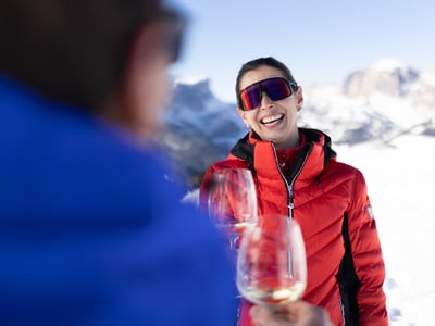 Südtirols Weinkultur lässt sich im Winter wunderbar beim Skifahren entdecken. In den Skigebieten von Alta Badia und Gröden sind eigens ausgebildete Skilehrerinnen und Skilehrer tätig, die Gästen die Feinheiten des Skisports, aber auch jene der lokalen Spitzentropfen näherbringen. Als Ski Wine Ambassadors sind sie beim Skifahren in den Dolomiten mit dabei und beim Genusserlebnis auf den Hütten.
