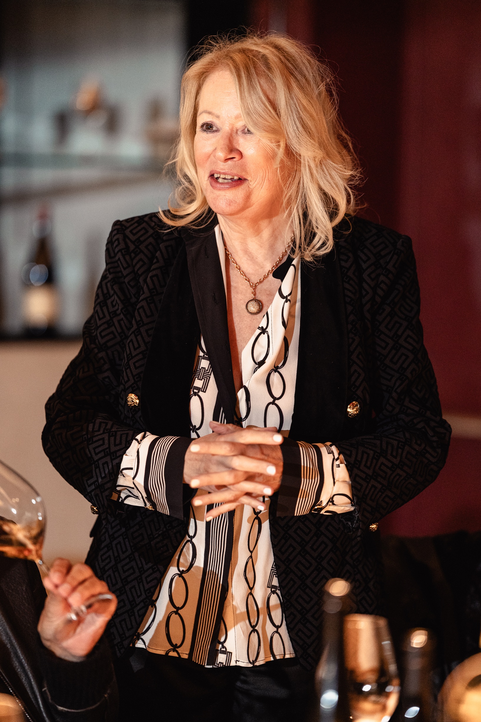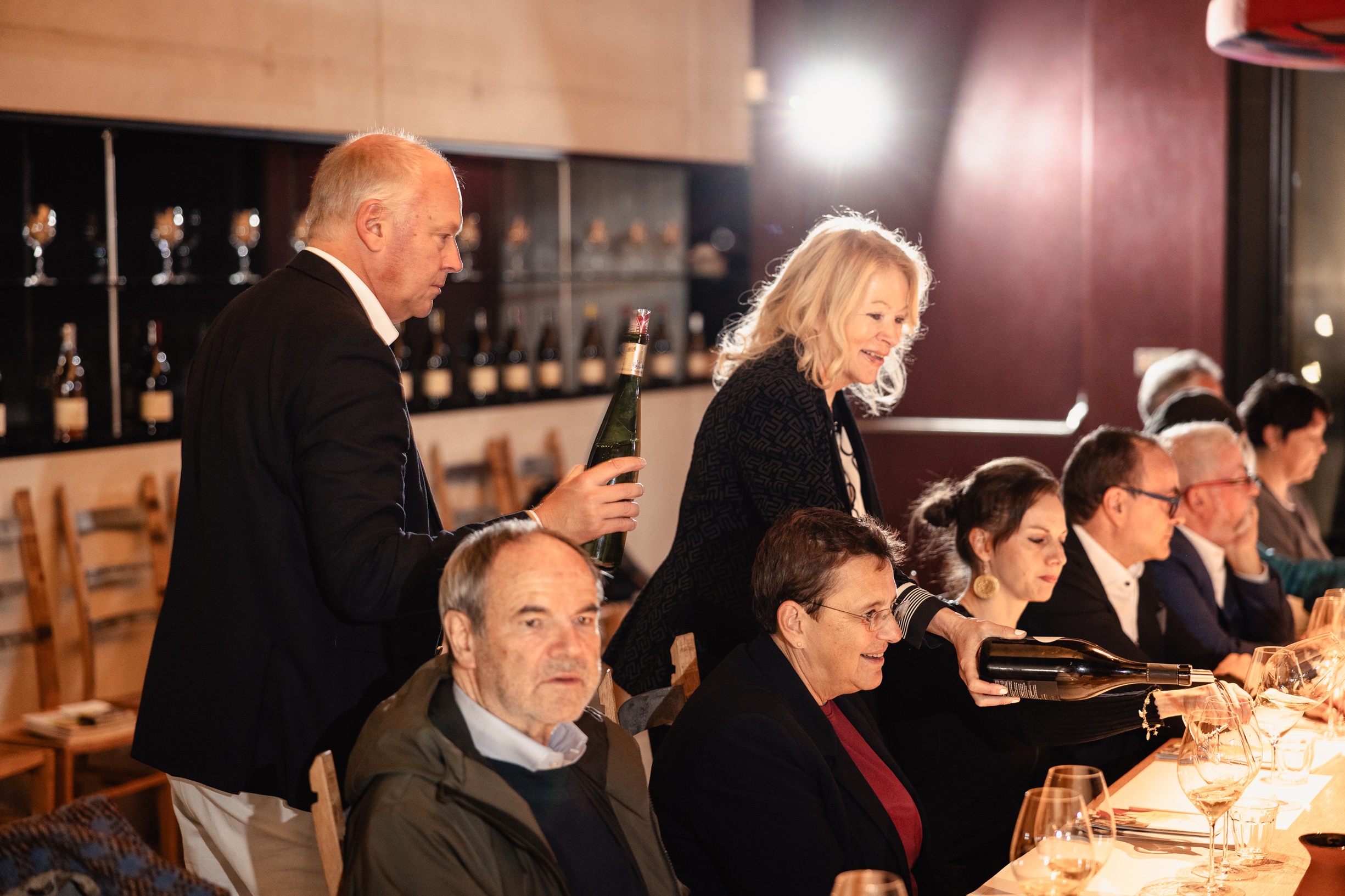 Am Abend stand dann ein exklusives Geburtstagsdinner auf dem Programm, bei dem es allerdings auch nicht „nur“ um den kulinarischen und Weingenuss ging. Vielmehr stand das Abendessen im Kalterer Restaurant Panholzer unter dem Motto „Ein perfektes Doppel: Gewürztraminer und asiatische Aromen“ und griff damit das Thema der Masterclass noch einmal auf. Auch der Vergleich mit den Weinen aus dem Elsass kam noch einmal zum Tragen, zu jedem der fünf Gänge wurde je ein Gewürztraminer aus Südtirol und dem Elsass serviert. Frank Smulders MW war wieder mit von der Partie, diesmal als Moderator.