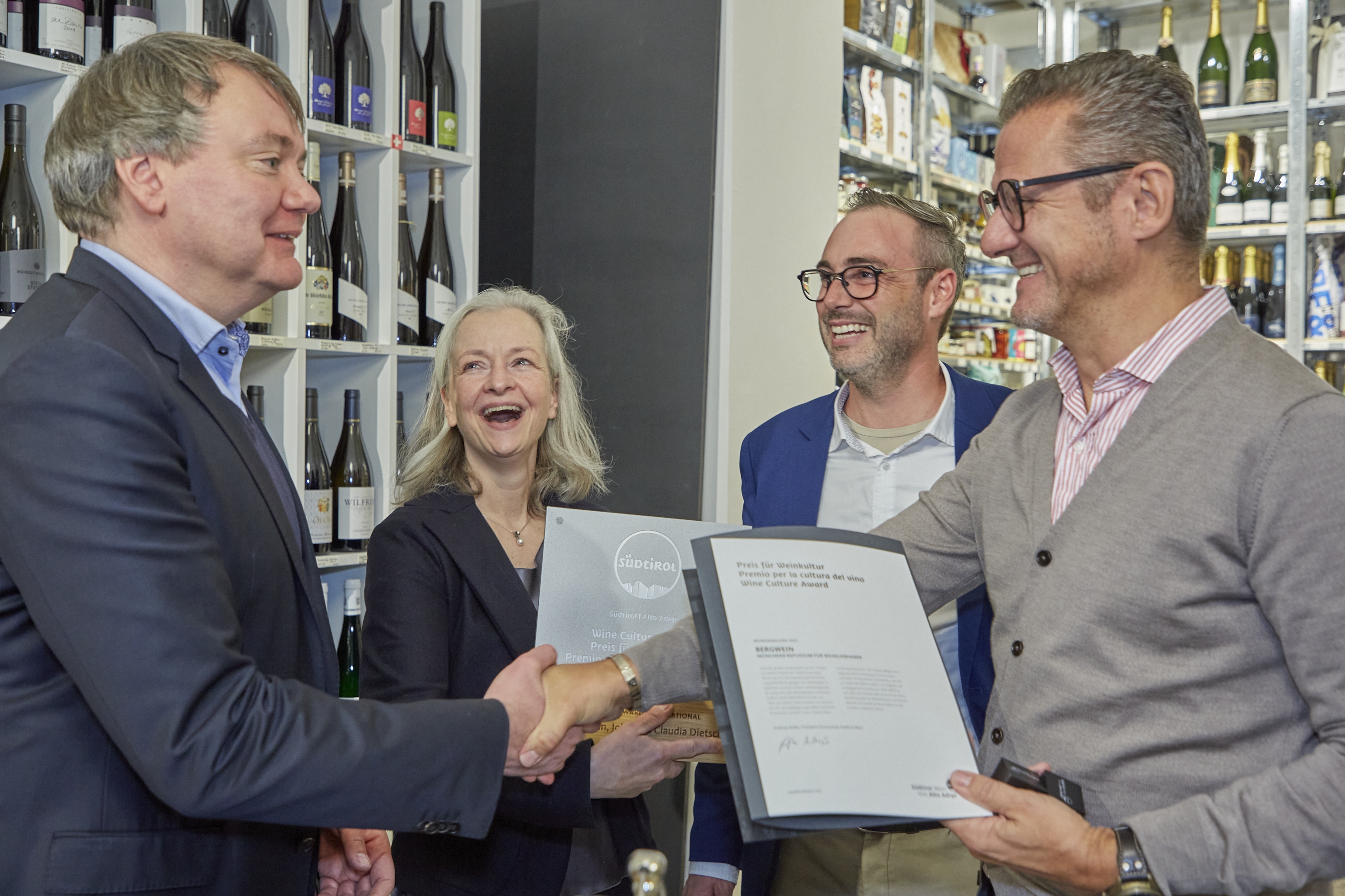 Mit BERGWEIN in München hat zum ersten Mal eine deutsche Weinhandlung den Südtirol Preis für Weinkultur in der Kategorie „Sonderpreis“ gewonnen. „Die Gründer von BERGWEIN sind derart eng mit unserem Land und seinem Wein verbunden, dass sie wichtige Botschafter von Südtirol Wein in Bayern und weit darüber hinaus sind“, so Andreas Kofler, Präsident des Konsortiums Südtirol Wein, des Trägers des Preises für Weinkultur.